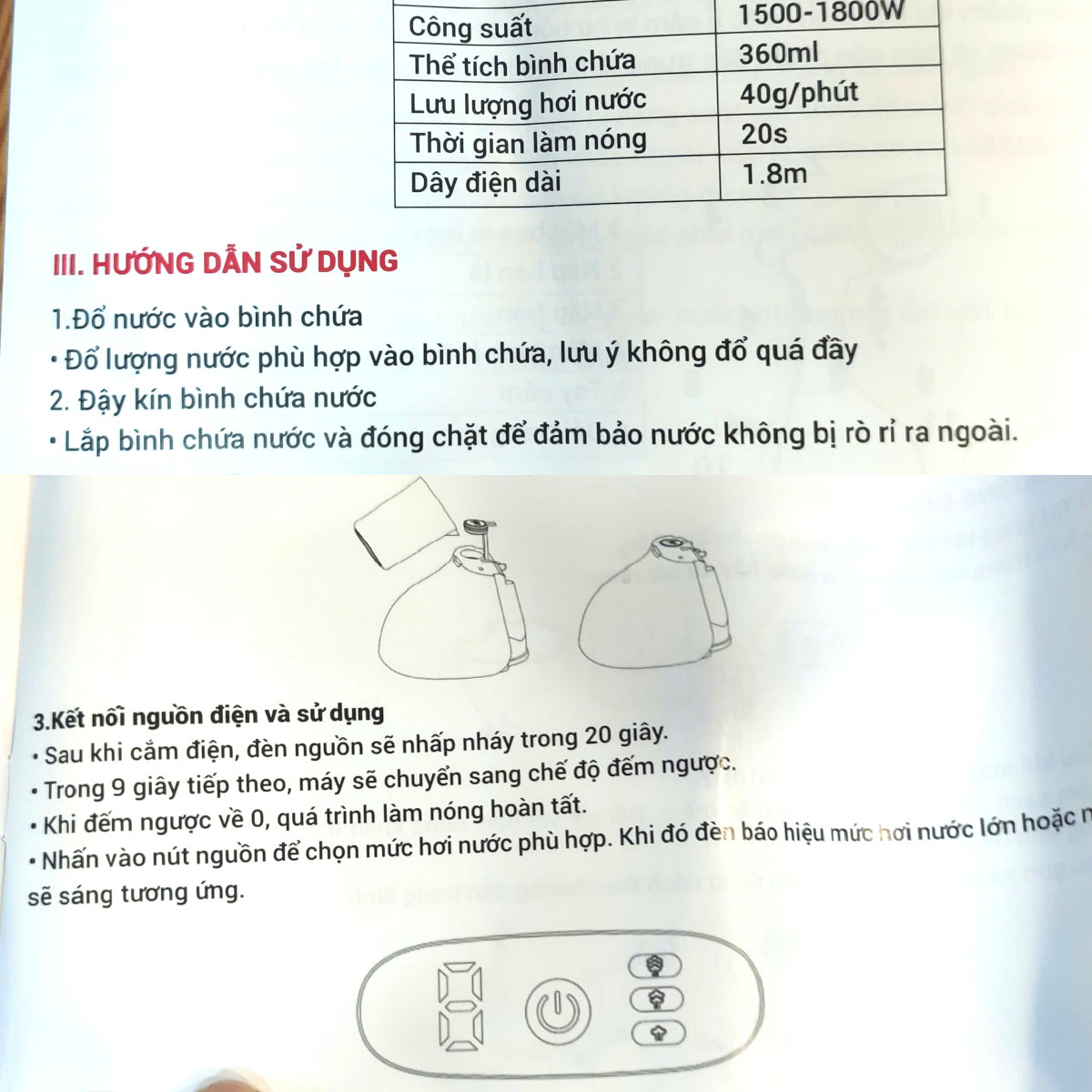 - Nhấn vào nút nguồn để chọn mức hơi nước phù hợp. Khi đó đèn báo hiệu mức hơi nước lớn hoặc m sẽ sáng tương ứng.