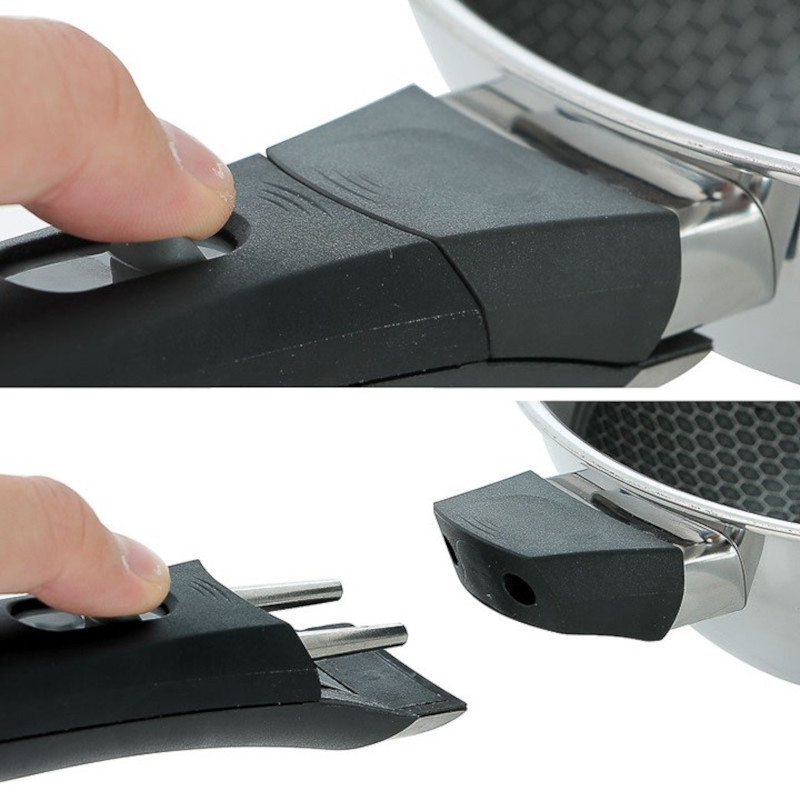 - Tay cầm tháo rời bằng nhựa BAKELITE cách nhiệt và chắc chắn.