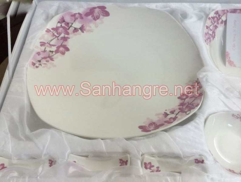 Bộ bát đĩa sứ xương hoa đào Nhật Bản ZoomHome