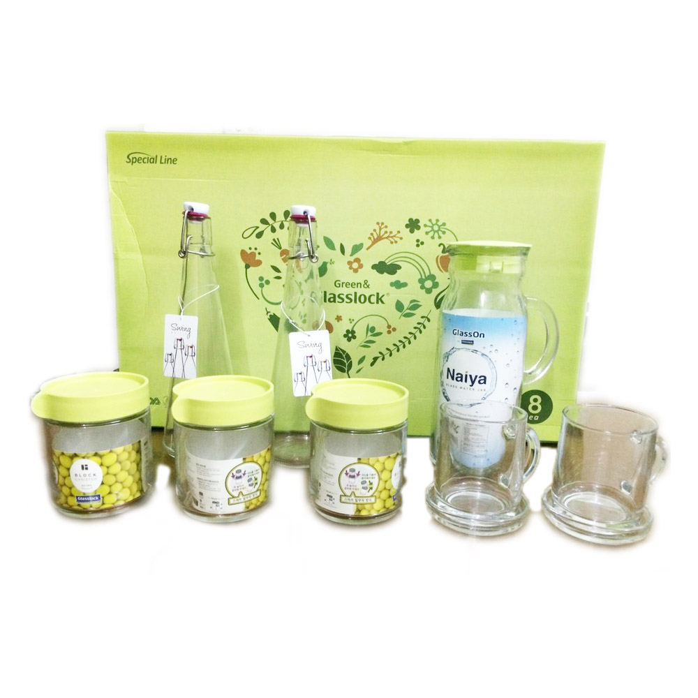 Bộ đồ thủy tinh đa năng có 10 món gồm: - 1 bình thủy tinh dung tích 1.2L - 2 cốc : dung tích 270ml + 2 đế để cốc và đậy cốc + 3 lọ đựng gia vị cao cấp dung tích 400ml: Nắp thiết kế đặc biệt dễ dàng cho người dùng mở nắp. - 2 chai thủy tinh đa n...Bộ gia vị 10 món thủy tinh cao cấp Glasslock