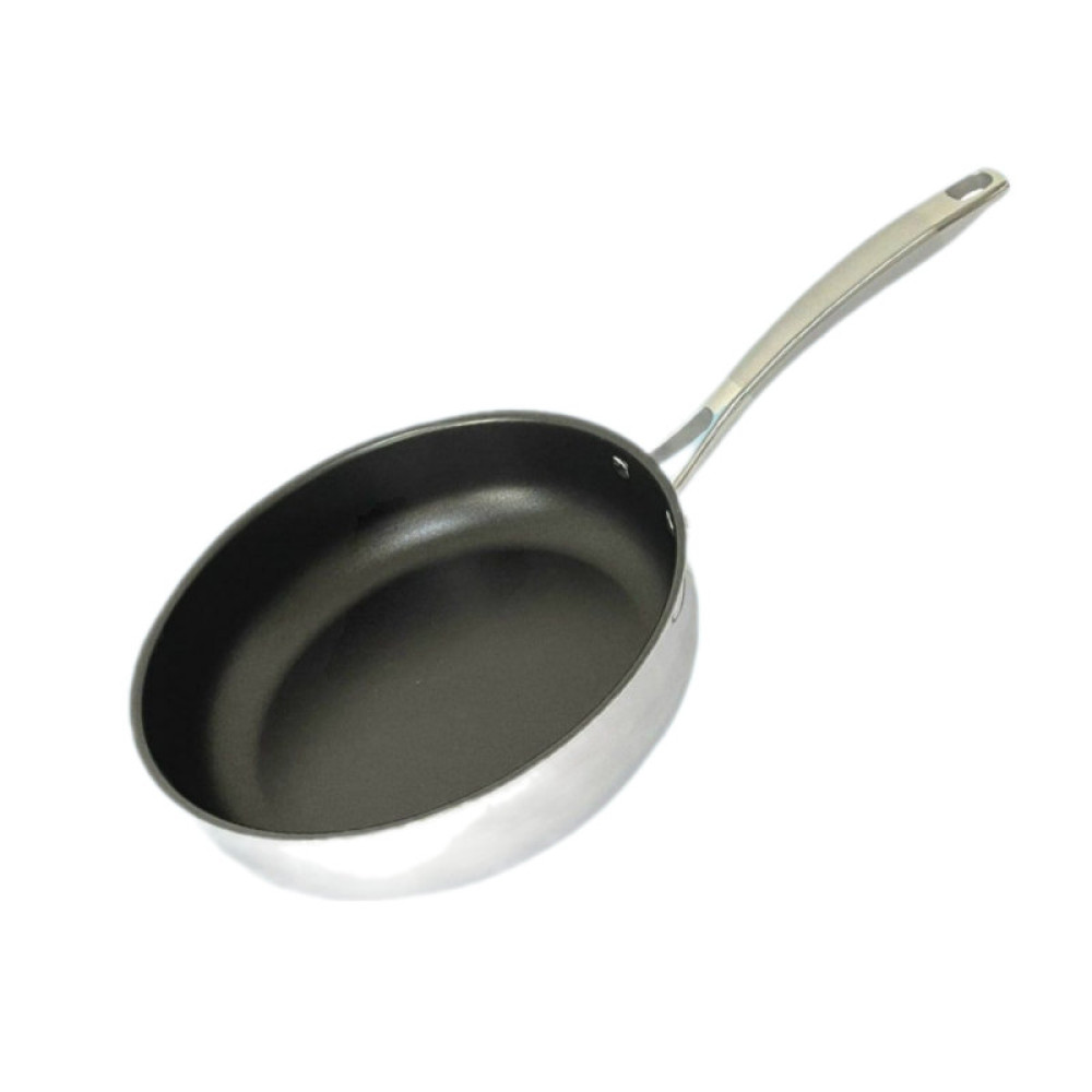 Chất liệu chảo: Inox 304 thân đúc đáy liền 5 lớp, lòng phủ chống dính Whitford