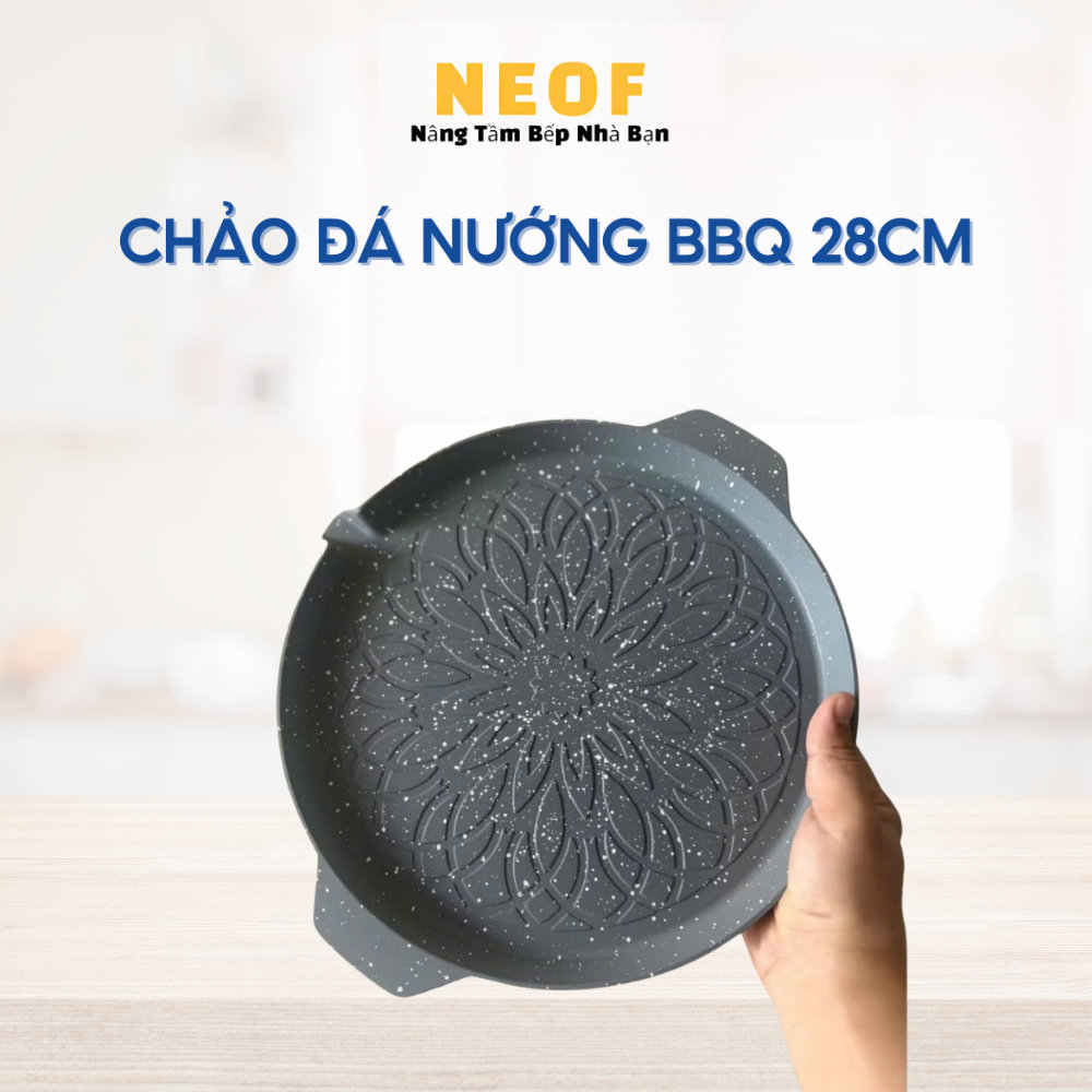Chảo nướng chống dính 6 lớp vân đá BBQ Hàn Quốc NEOF 28cm đáy từ