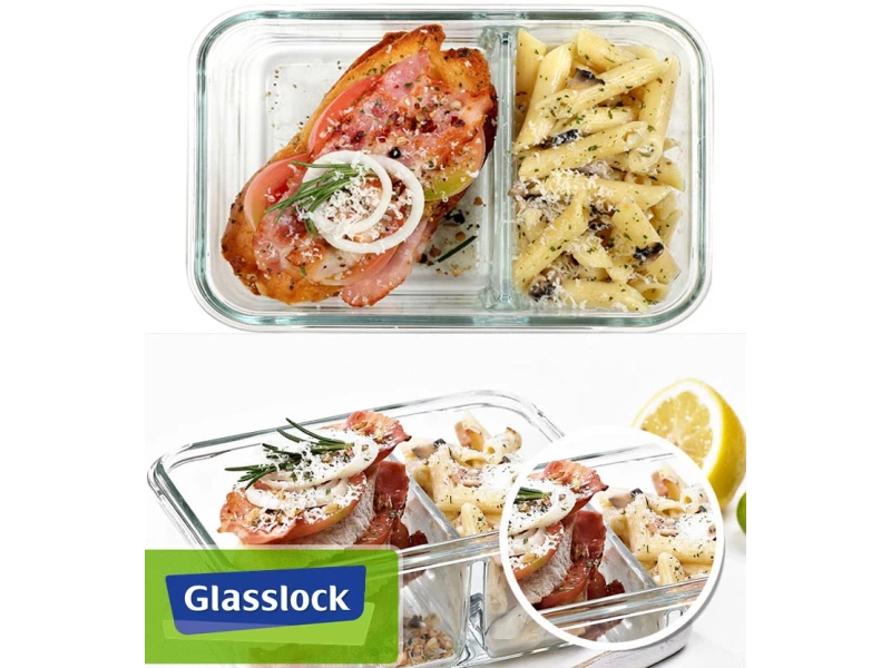 Hộp thủy tinh chữ nhật 2 ngăn 670ml Glasslock MCRK-067 có thiết kế tinh tế, chất liệu thuỷ tinh trong suốt được làm từ cát tự nhiên, không chứa chất độc hại BPA (Bisphenol-A) nên cực kỳ an toàn đối với sức khoẻ người sử dụng. Đặc biệt, hộp rất khó vỡ nếu rơi dưới độ cao 1.5m nhờ chất liệu thuỷ tinh cường lực, nên bạn hoàn toàn yên tâm khi đang dùng cơm tại văn phòng hoặc trường học.