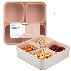 Bộ Mứt Tết 4 hộp đựng bánh kẹo hạt dưa vuông Inochi Haru hàng xuất Nhật