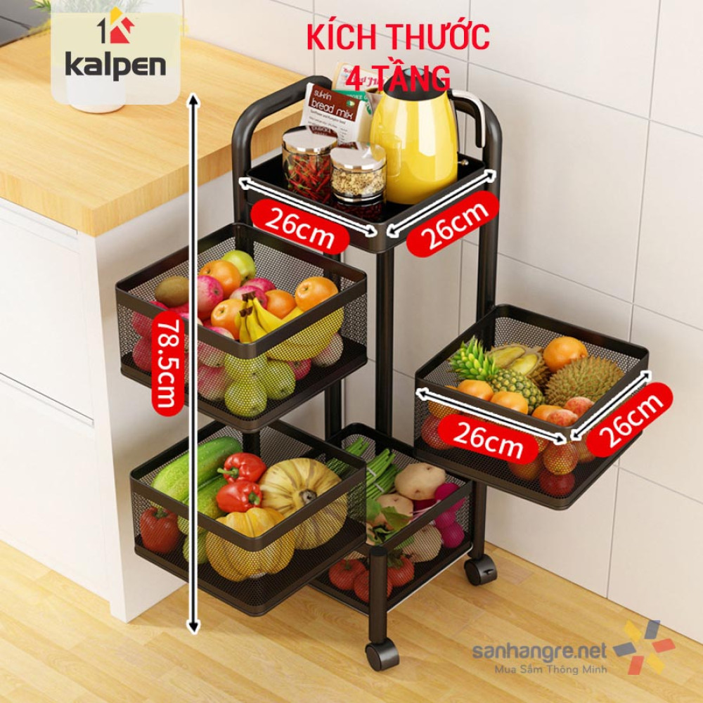 Kệ rổ xoay vuông 4 tầng đa năng Kalpen có bánh xe xoay 360 độ xuất Nhật
