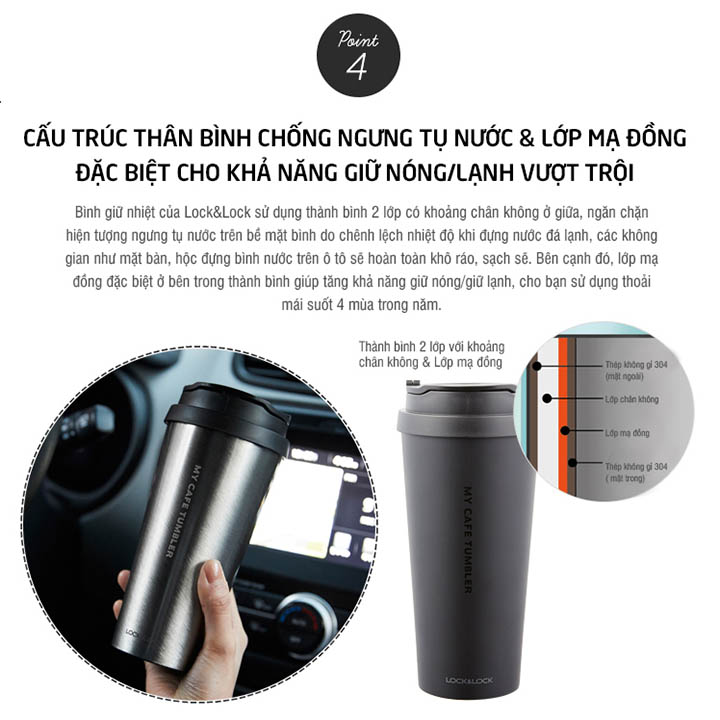 Mã sản phẩm: LHC4151GOL Thương hiệu: Lock&Lock  Xuất xứ: Hàn Quốc Sản xuất: Trung Quốc Chất liệu: Inox, nhựa Kích thước: 20 x 10 x 8 (cm) Dung tích: 540ml Màu sắc: Bạc, đen, bạc, gold Trọng lượng: 5...