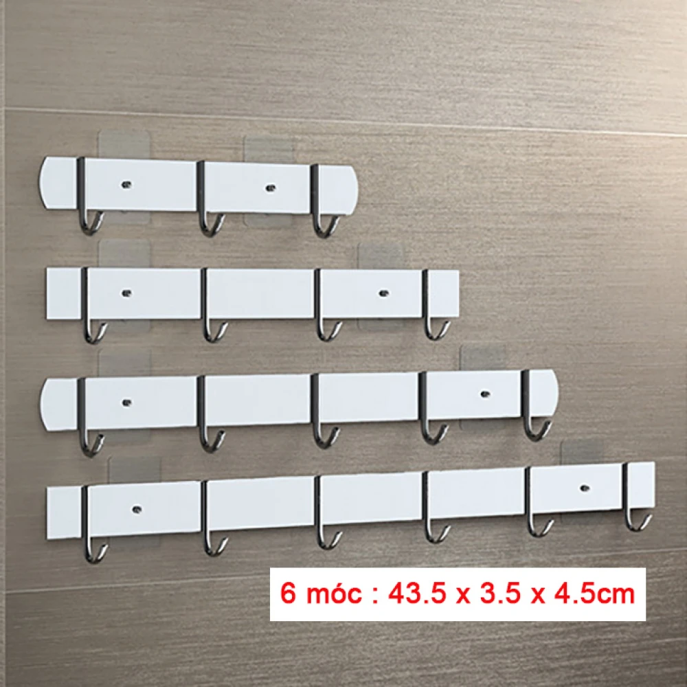 Sản phẩm gồm : 1 thanh treo nhiều móc + 2 miếng dính tường chuyên dụng + 2 vít nở