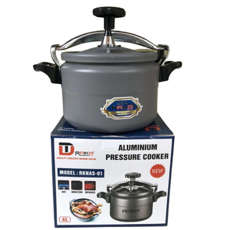 - Nồi áp suất RAIKA 4 lít Đạt Tường RKNAS-01 có dung tích 4L với thiết phù hợp, có tay cầm nhựa chịu nhiệt giúp bạn dễ dàng di chuyển mà không lo bị bỏng. Mặc dù sản phẩm có giá thành khá rẻ nhưng nồi vẫn đảm bảo đủ các điều kiện để người dùng có thể sử dụng như: nắp nồi khóa kín, hệ thống van xả áp….Trên nắp nồi là hệ thống van xả an toàn giúp giải phóng nhanh áp suất và không gây cháy nổ.
