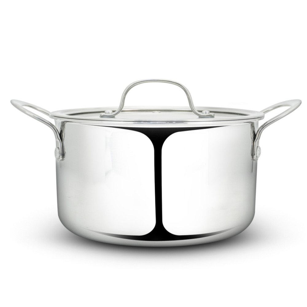 Nồi inox Kalpen Kampfer có cấu tạo 3 lớp liền thân: Lớp trong cùng tiếp xúc trực tiếp với thực phẩm là inox 304. Lớp giữa là nhôm giúp truyền nhiệt và lan tỏa nhiệt đều một cách nhanh chóng. Lớp ngoài cùng tiếp xúc với mặt bếp là inox 430 có khả năng hấp thụ nhiệt nhanh chóng và hiệu quả.
