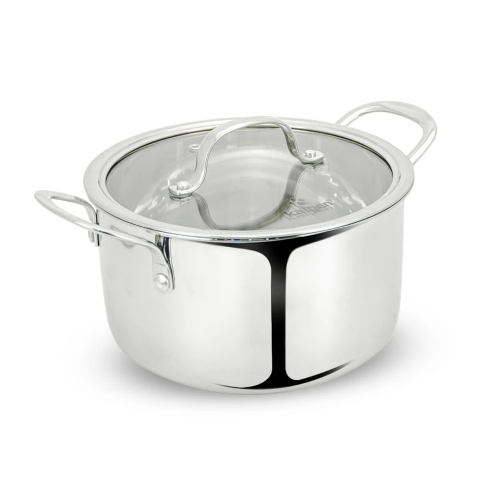 Nồi inox Kalpen Kampfer 24cm có cấu tạo 3 lớp liền thân: Lớp trong cùng tiếp xúc trực tiếp với thực phẩm là inox 304. Lớp giữa là nhôm giúp truyền nhiệt và lan tỏa nhiệt đều một cách nhanh chóng. Lớp ngoài cùng tiếp xúc với mặt bếp là inox 430 có khả năng hấp thụ nhiệt nhanh chóng và hiệu quả.