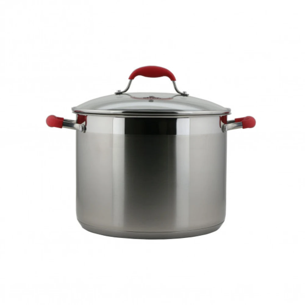 - Tay cầm inox đinh tán bọc silicon đỏ cực kỳ chắc chắn và sang trọng.,