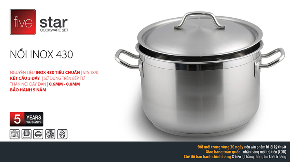 - Nồi luộc gà FiveStar làm từ chất liệu inox cao cấp đảm bảo an toàn cho sức khỏe người sử dụng.