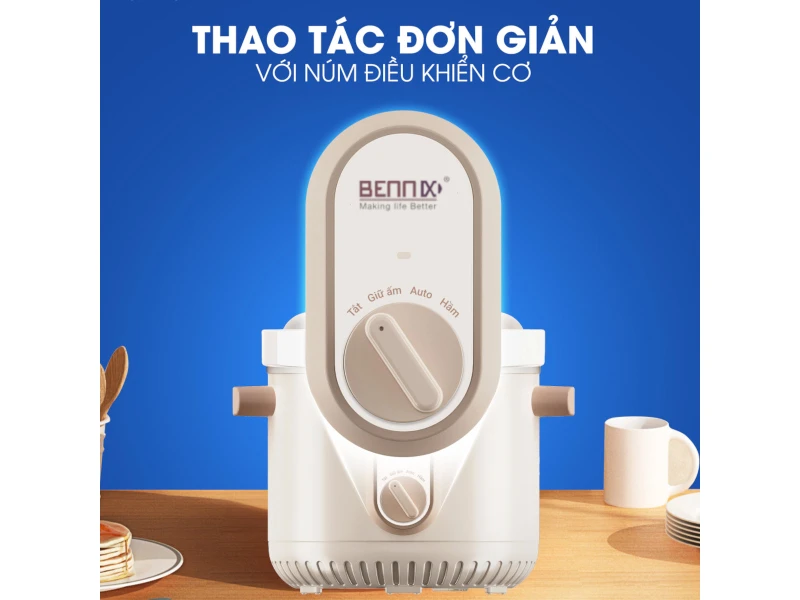 - Nồi nấu chậm Bennix BN-68KC-C sẽ là người bạn đồng hành lý tưởng cho mỗi bữa ăn gia đình. Với dung tích 3L, nồi chậm cơ này không chỉ giúp bạn chế biến các món hầm thơm ngon mà còn tạo ra những bát cháo bổ dưỡng, ấm áp cho cả nhà thưởng thức.