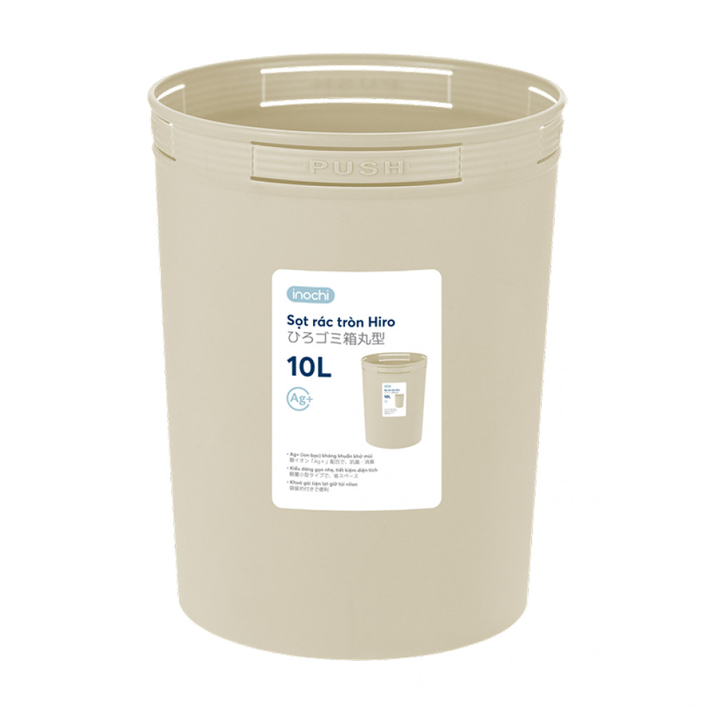Sọt rác tròn Inochi Hiro 10L xuất Nhật - Công nghệ Ag+ (ion bạc) kháng khuẩn khử mùi
