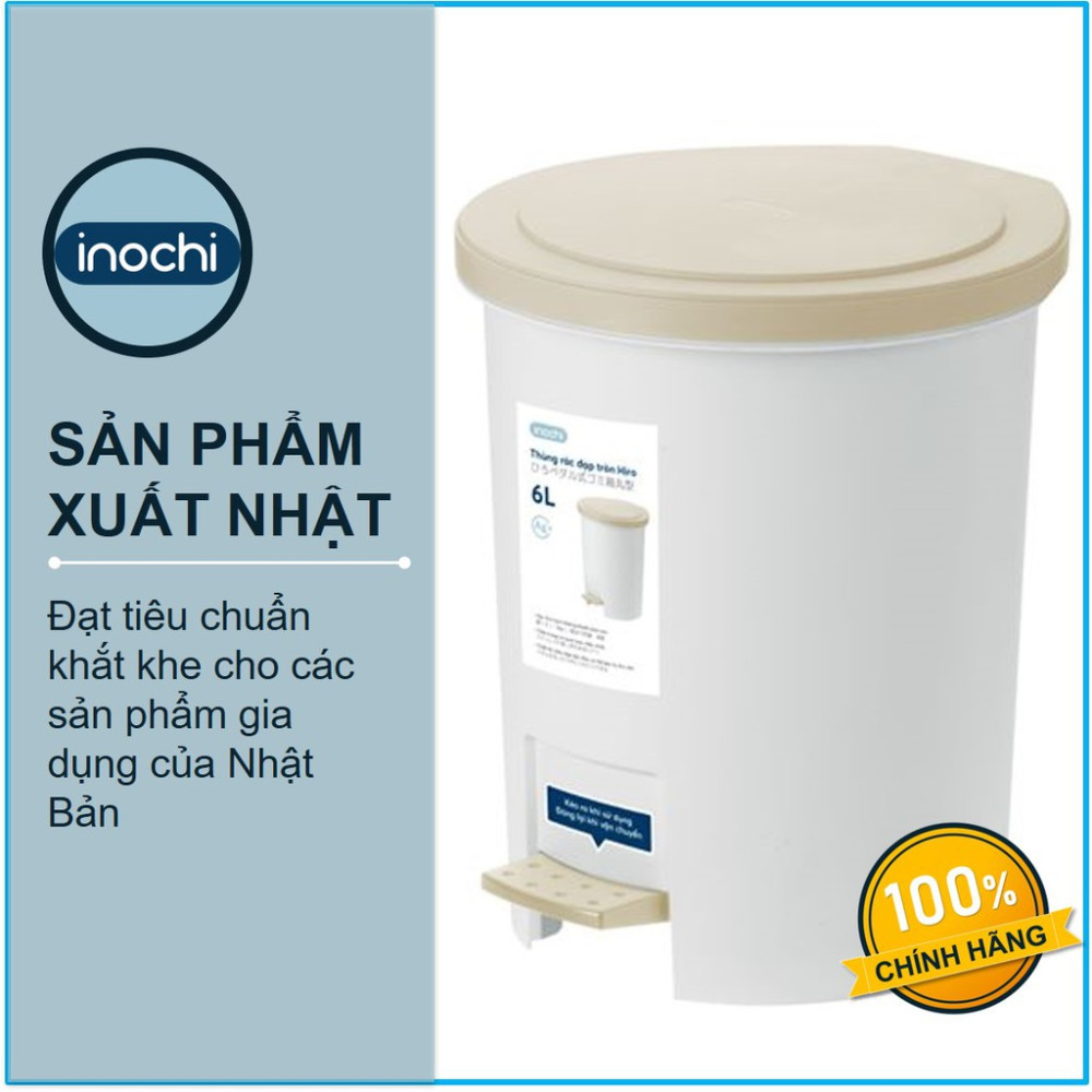 Thùng rác nhựa cao cấp đạp chân nắp đậy tròn Inochi Hiro 6 Lít hàng xuất Nhật Bản